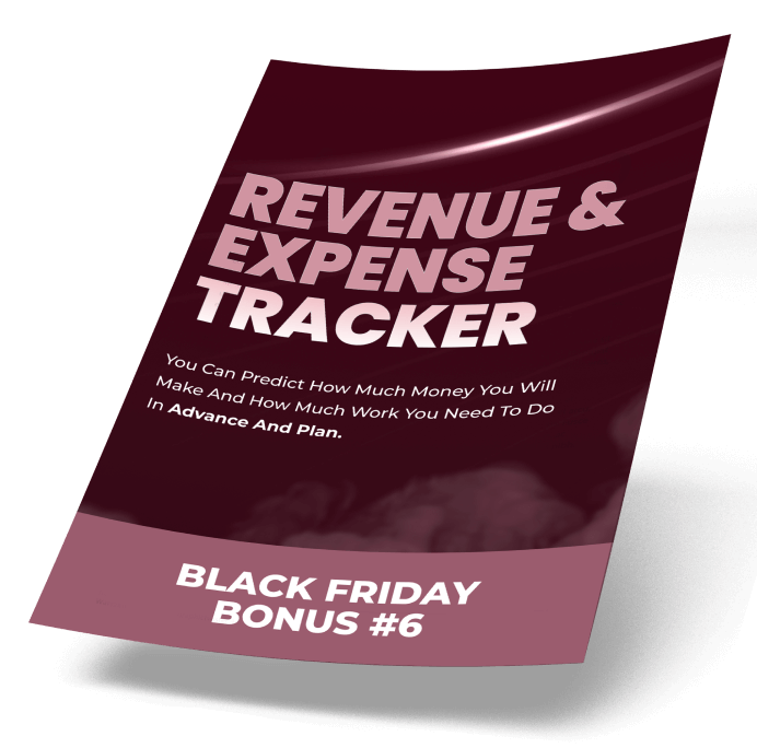 Exclusive Black Friday Bonus #6: Revenue And Expense Tracker So Even If You Launch Your Medspa Business On The Side, You Can Predict How Much Money You Will Make And How Much Work You Need To Do In Advance And Plan.